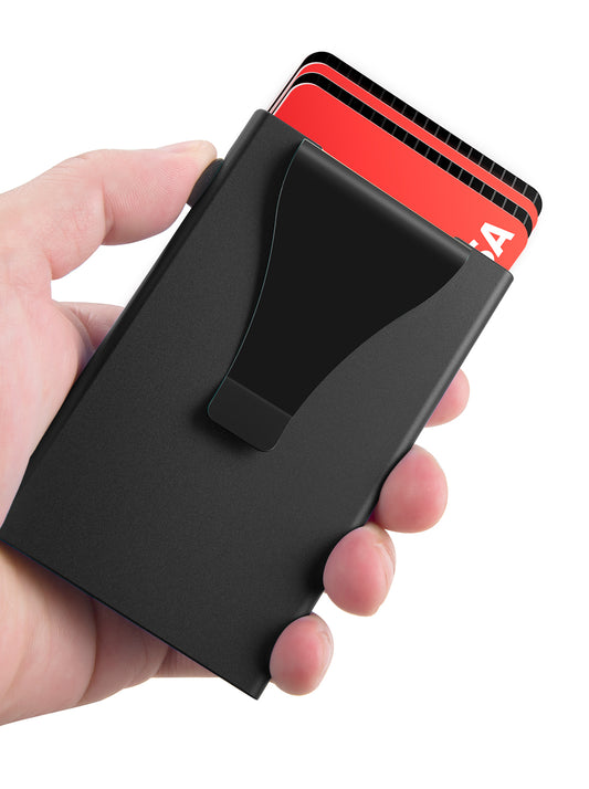 MOSIYEEF FS201A Black Pop Up Stealth Wallet for Men, RFID Blocking Card Wallet for Men with Money Clip