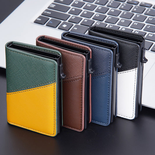 Walvefa FS303A Color-blocked RFID Wallet, Leather Slim Wallet with Money Clip