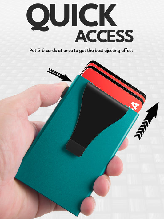 Pop Up Card Holder Wallet - Minimalist Slim Stealth Wallet for Men - RFID Blocking Mens Wallet with Money Clip Cash Pocket - Aluminum Metal Push Button Wallet for Notes,Coins